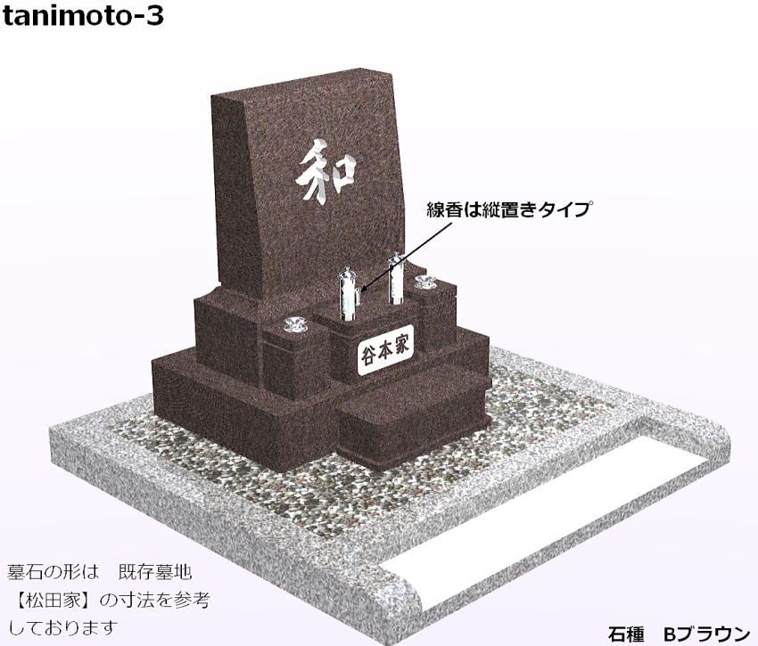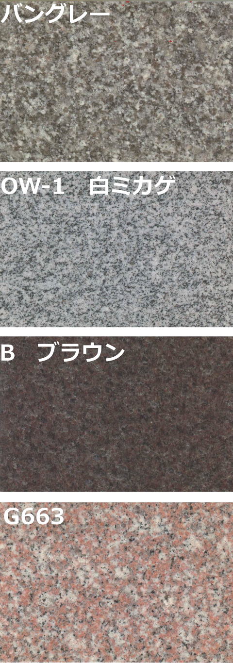 このページでは4種の石種 2タイプの形 墓石に彫る文字4種類を掲載しております